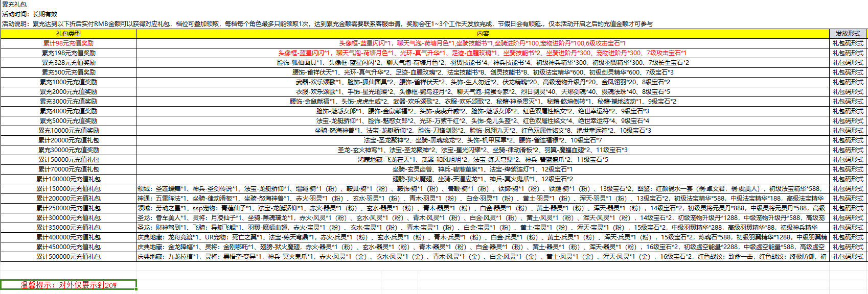 开服表