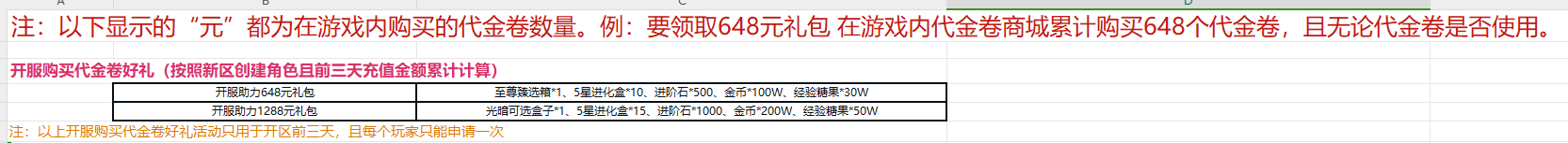 开服表